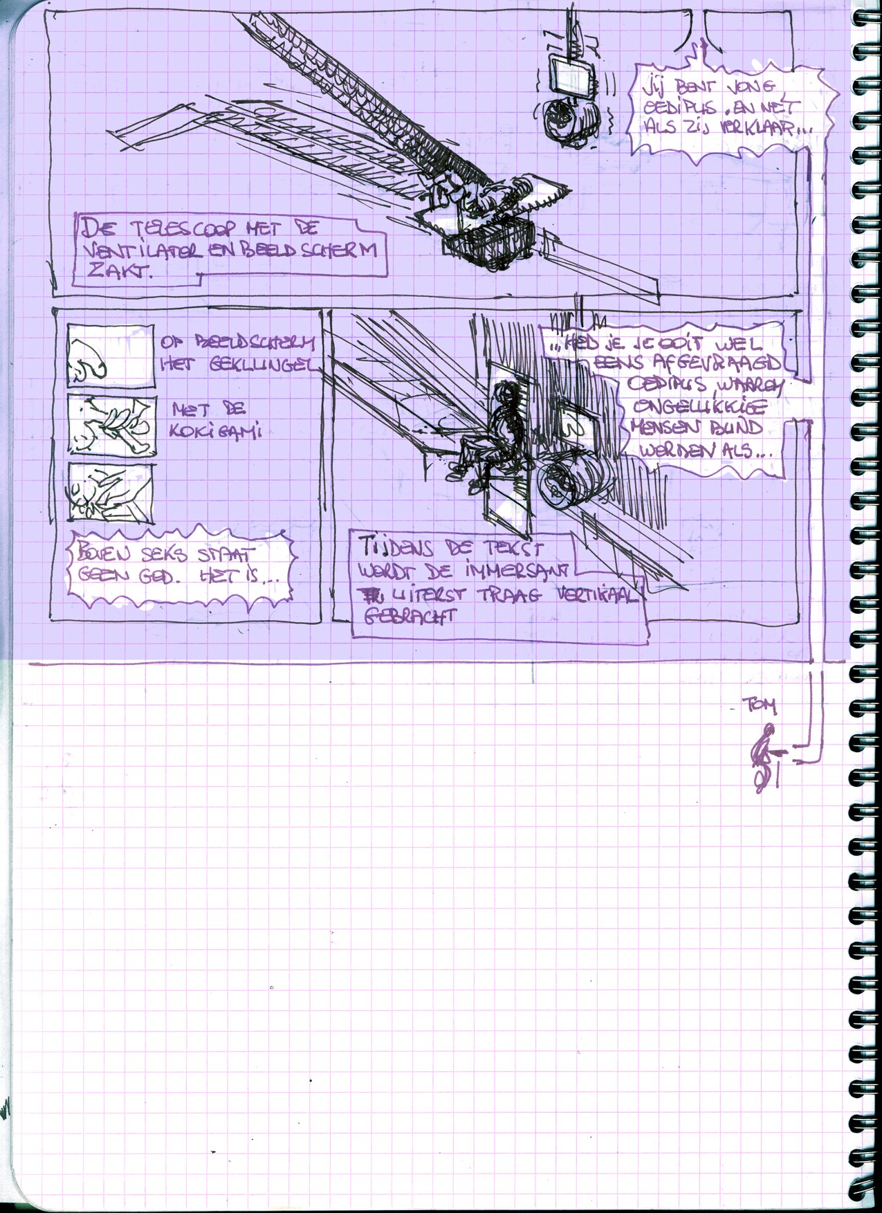 An encabled tragedy. The mythological figure of Oedipus symbolizes modern man and his tragic fate. Oedipus is blind when he can still see and he only starts seeing when he physically blinds himself. He never succeeds in obtaining a central perspective on the world.