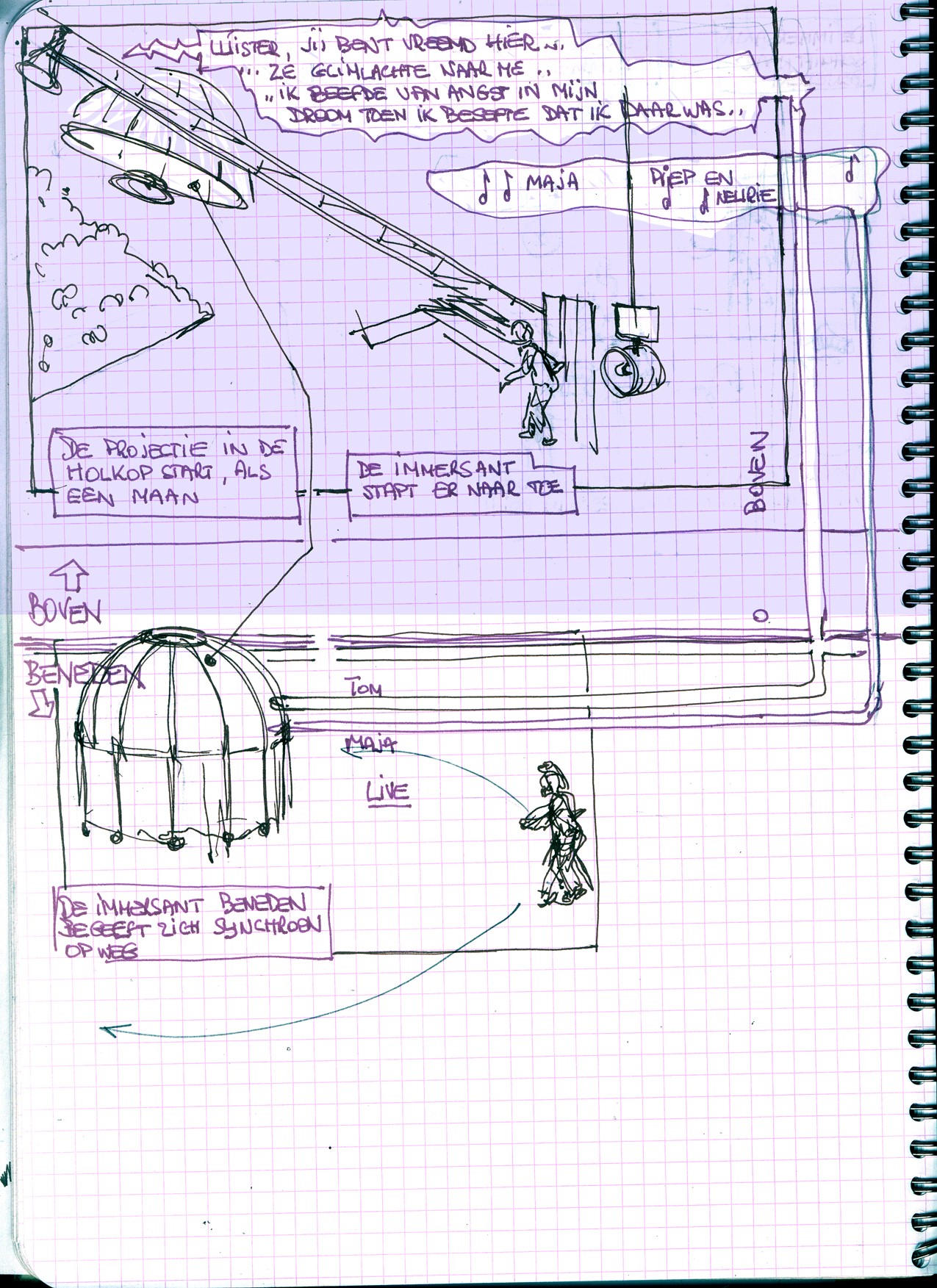 O_REX was an important step in CREW’s experiments with immersive technology. CREW, EDM developed “Robotic Peepholes”: this innovative technology allows for mobile computers to become a window to a parallel universe which appears to double the scene. It implied a development of its own tracking system, 3D interface.